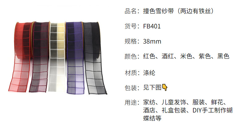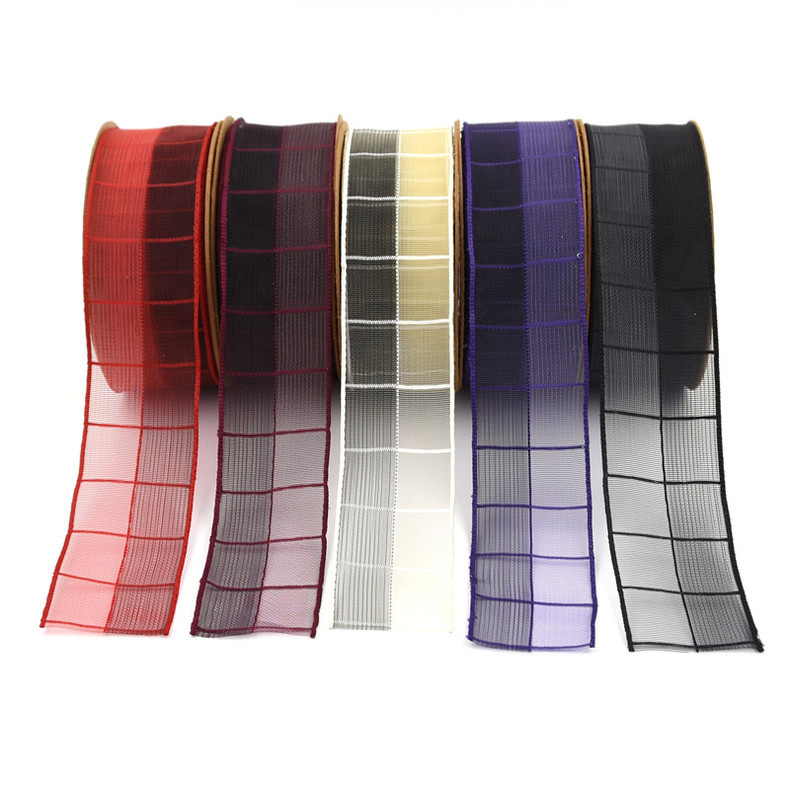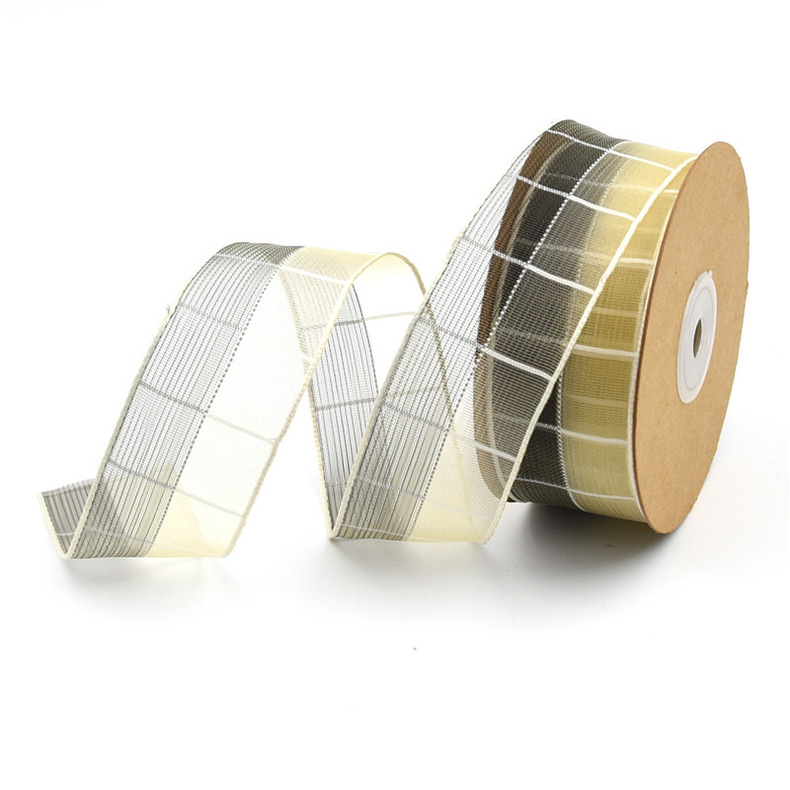 Transfronterizo europeo y americano 3,8 cm contraste color Plaid nieve cinta ropa hogar textil producción material cinta con alambre de hierro en stock 10M