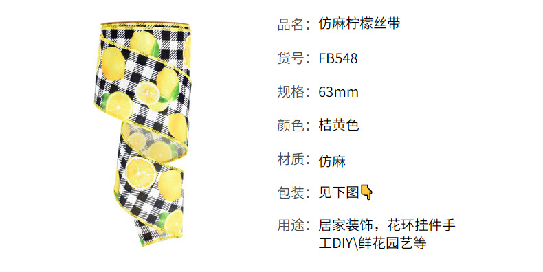 63mm transfronteriza nueva cinta de limón de frutas de verano tema de vacaciones de verano guirnalda decorativa cinta de lino de imitación 5Y