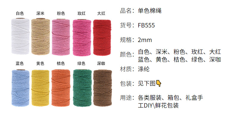 2mm hecho a mano DIY cuerda de algodón colorido tejido cuerda de encuadernación tapiz material decorativo cuerda etiqueta en Stock M