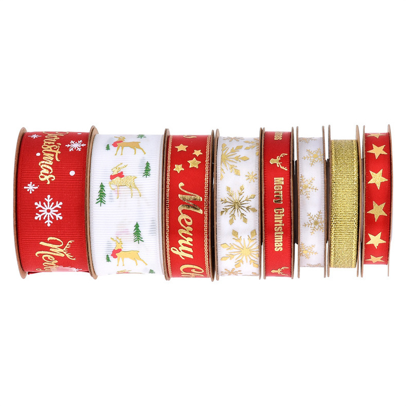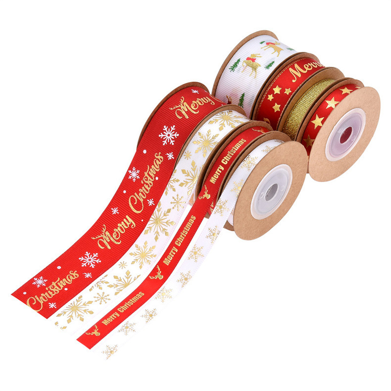Transfronterizo amazon nueva impresión dorada cinta de navidad cinta decorativa de navidad embalaje de regalo traje de cinturón de forja