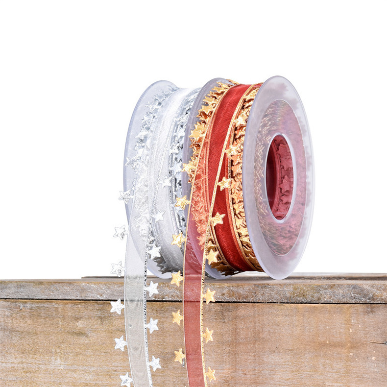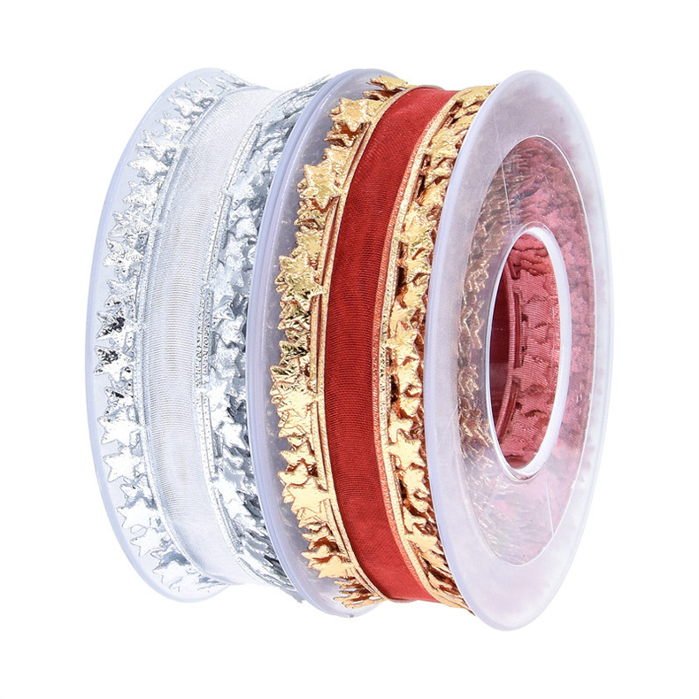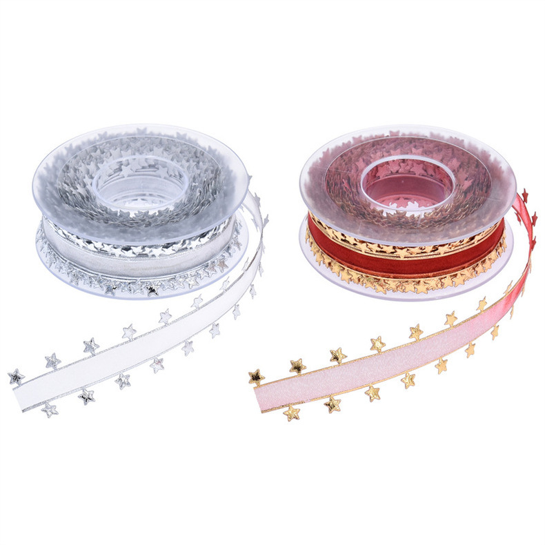 Nuevo transfronterizo imitación de cuero en relieve pentagramas cinta de nieve decoración de vacaciones embalaje de regalos cinta de navidad 15 metros