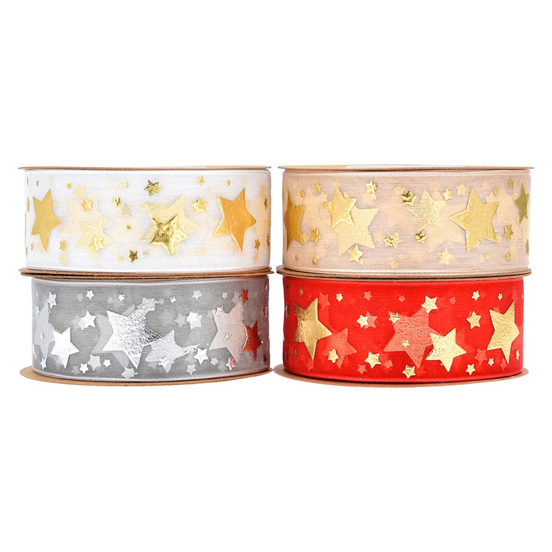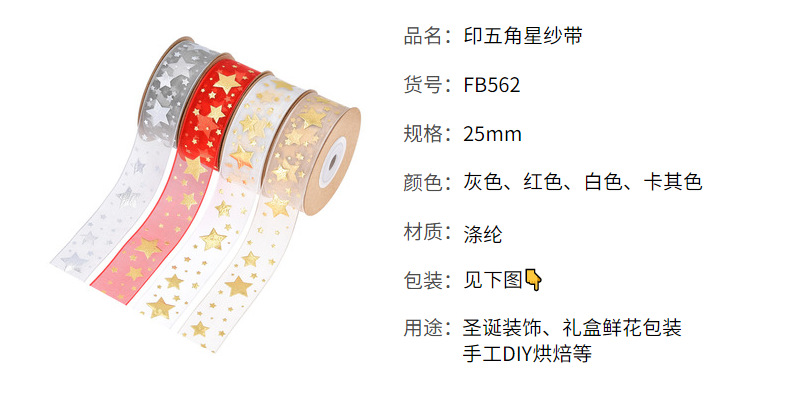 Transfronterizo pentagonal clara cinta blanca regalo de Navidad embalaje de pastel correa espuma correa de estampado 10 yardas