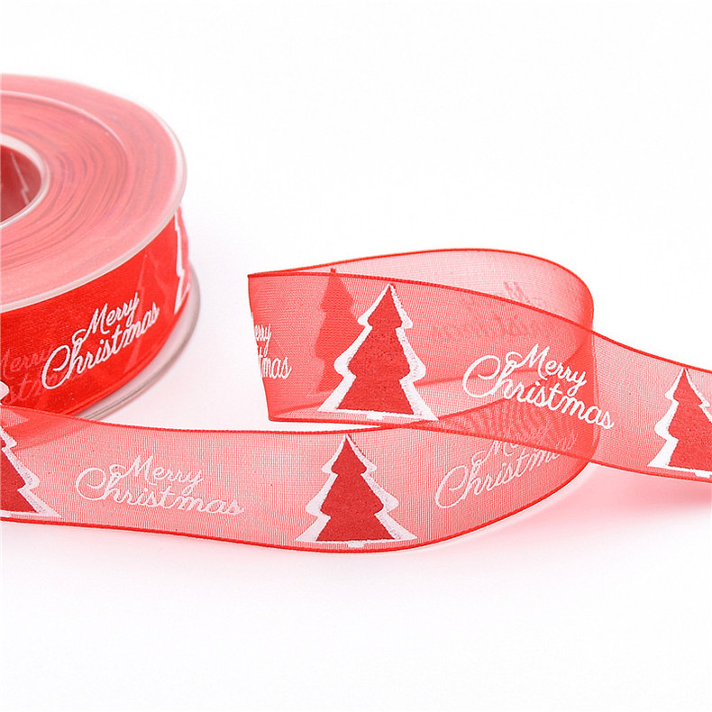 Inventario al por mayor impresión de navidad cinta de hilo de nieve de navidad embalaje de regalos de navidad decoración de árbol de navidad cinta