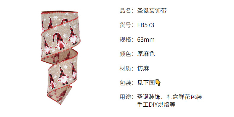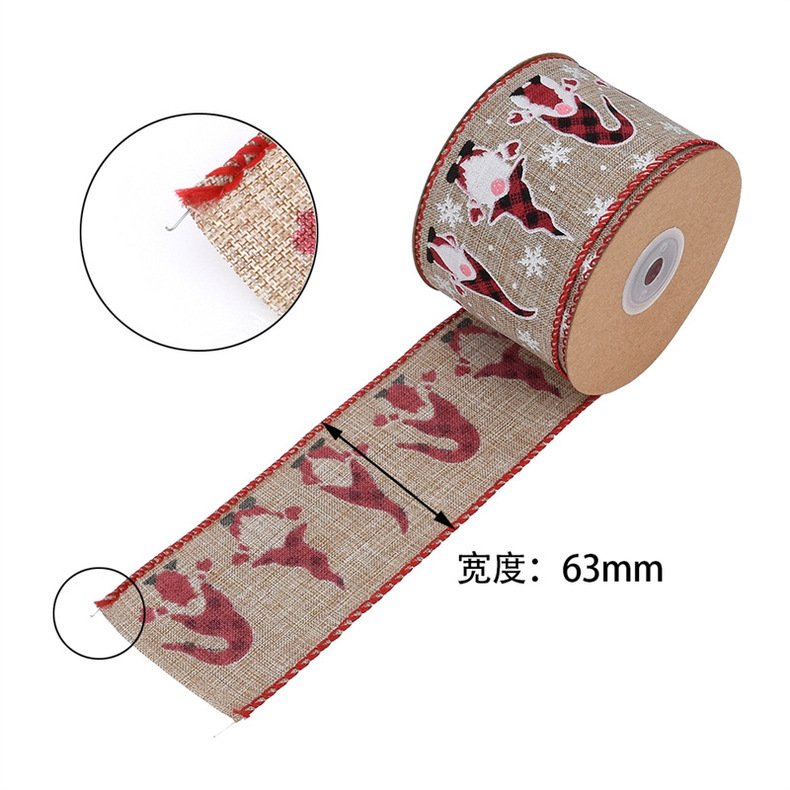 Dibujos Animados Santa Claus imitación decorativa cinta de cáñamo 63mm transfronteriza nueva Navidad lindo enano alambre cinta de cáñamo