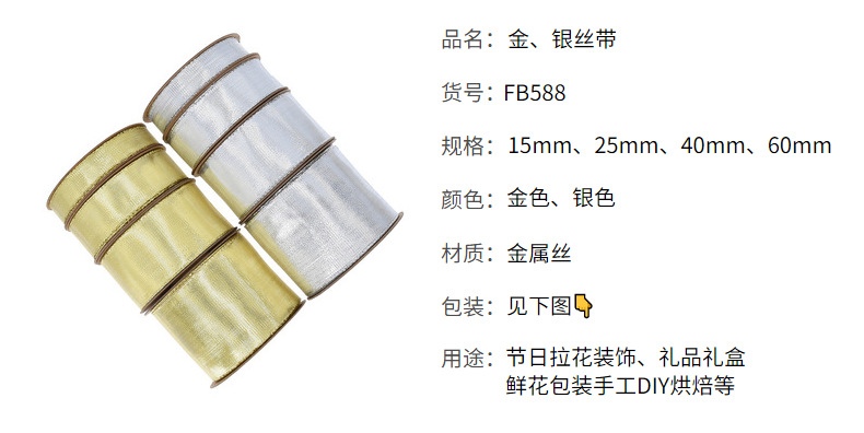 Nuevos productos transfronterizos, verde dorado y plateado brillante, cinta de seda, decoración de flores de celebración festiva, embalaje de regalo, cinturón de cebolla brillante, 10 yardas en stock