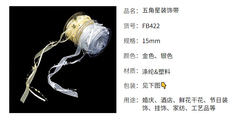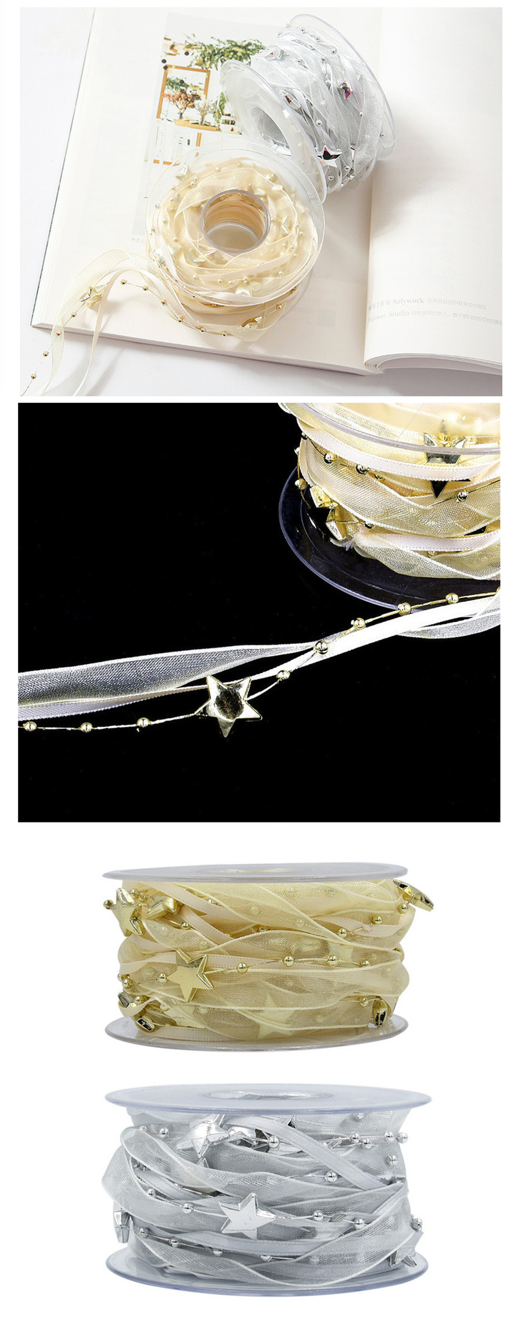Transfronteriza estrella de cinco puntas cuentas de alambre de plástico cinta de gasa flor regalo embalaje cinta árbol de Navidad cinta decorativa