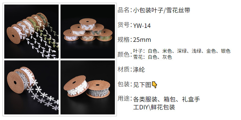 Fuente de la fábrica deja ultrasónico en relieve cinta no tejida encaje copo de nieve hojas de Navidad Correa decorativa ancho
