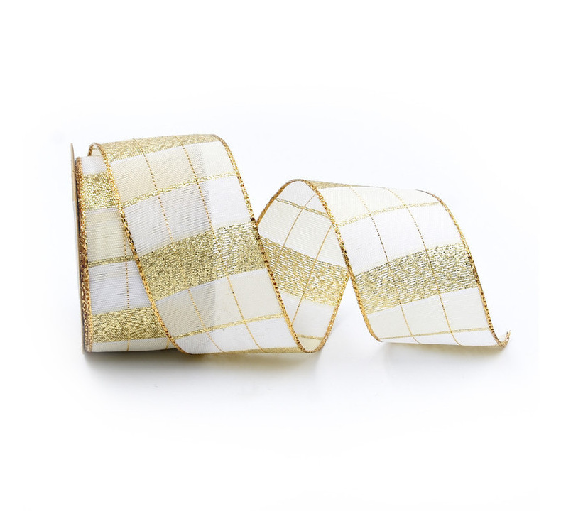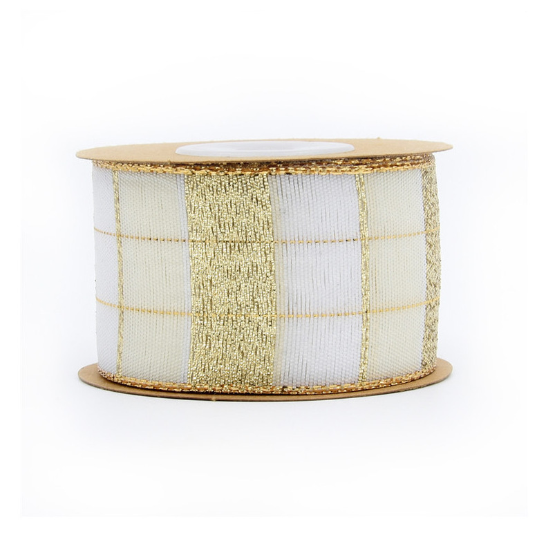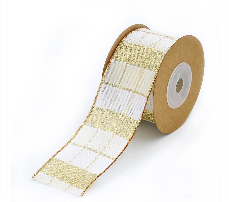Amazon 4cm brillo cinta decorativa de Navidad cinta a cuadros de hilo teñido Borde de alambre de regalo de Navidad 5 yardas en stock