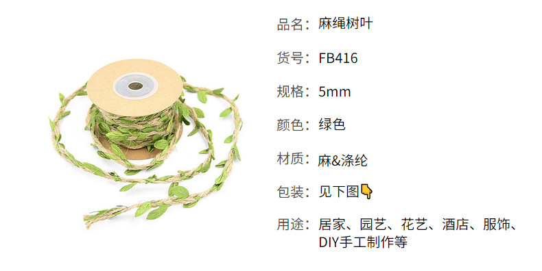 Trenza trenzada cuerda de cáñamo hoja verde embalaje cuerda jardinería cuerda decorativa casera guirnalda hecha a mano Correa 5 M