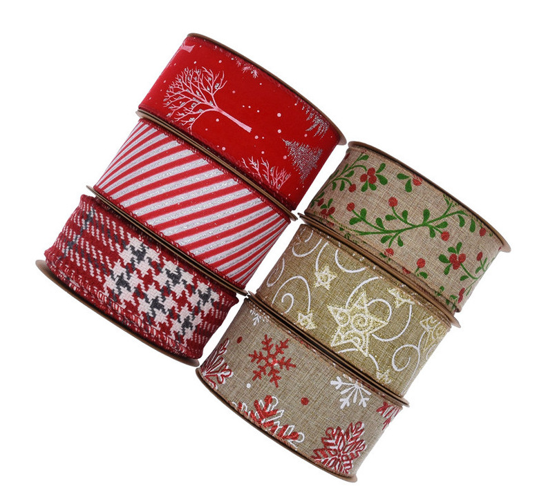 Nuevos productos transfronterizos borde de alambre imitación de tela de lino cinta de Navidad decoración de árbol de Navidad arco material de corte de borde