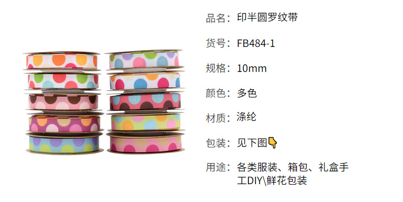 Transfronterizo 1cm AliExpress impresión en color semicírculo costilla cinta flores regalo material de embalaje punto cinta 5Y en stock