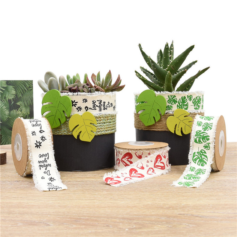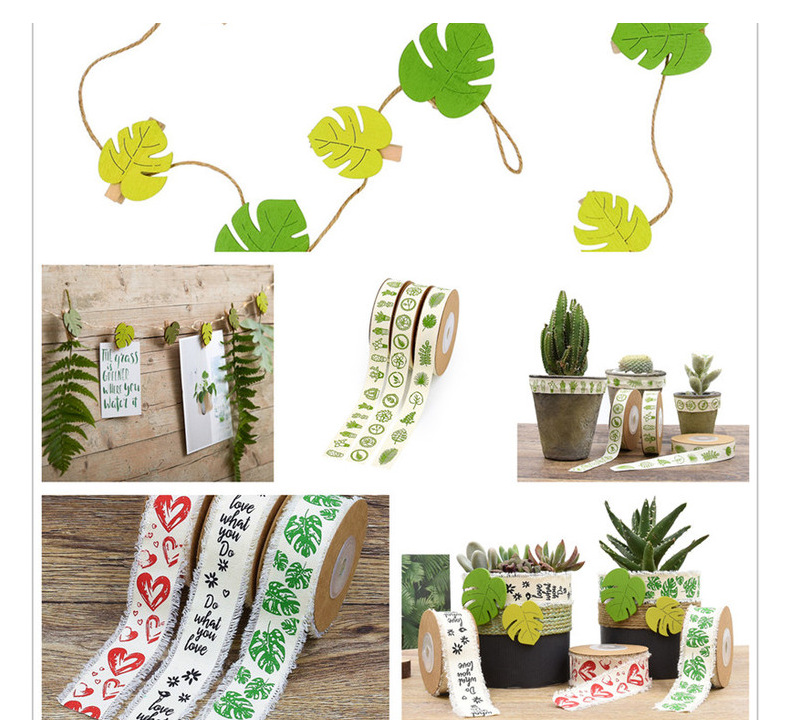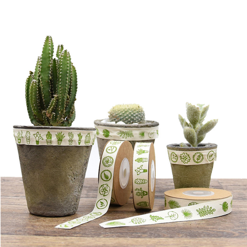 Nuevo cactus transfronterizo impresión de tortuga hoja de algodón cinta jardinería en maceta decoración doméstica DIY cuerda de madera de algodón