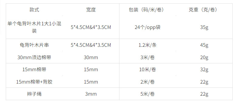 | Especificaciones y modelos | 24 piezas de madera / bolsa, con cuerda de clip - 1,2 metros, borde rojo / 3 metros, borde verde / 3 metros, borde negro / 3 metros, bola de hadas 10 metros, hojas de tortuga 10 metros, flores pequeñas 10 metros, bola de hadas 2 metros + pegamento de espalda, hojas de tortuga 2 metros + pegamento de espalda, flores pequeñas 2 metros + pegamento de espalda, cuerda de trenza amarilla y verde 5 metros, cuerda de trenza amarilla 5 metros, cuerda de trenza roja 5 metros, cuerda de trenza rosa oscura 5 metros, cuerda de trenza azul 5 metros, cuerda de trenza de café 5 metros metro |