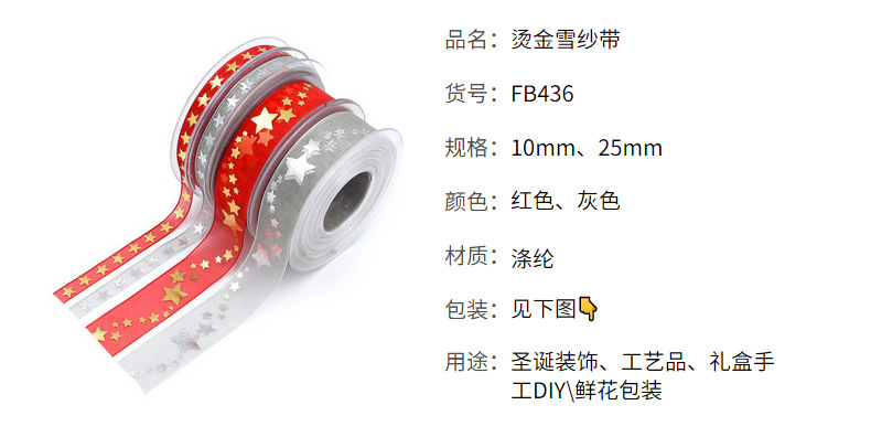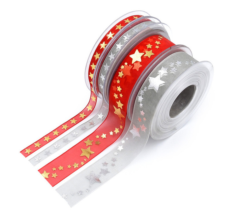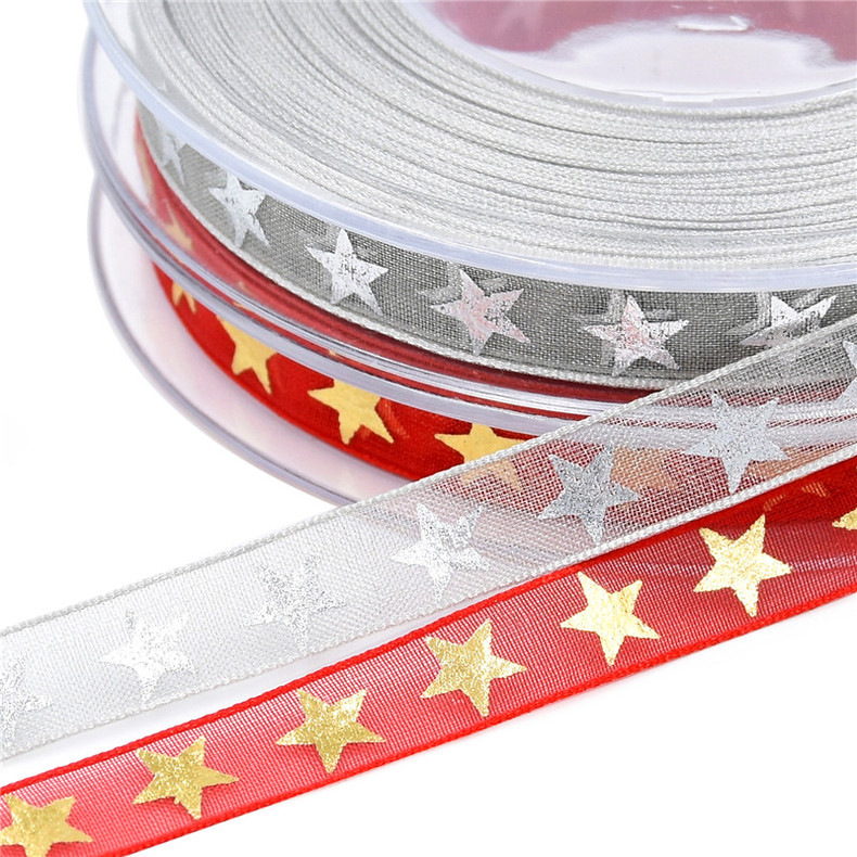 Transfronterizo nueva estrella de cinco puntas Cinta de Oro de plata caliente decoración de Navidad embalaje de regalo cinta de nieve Navidad 20 m