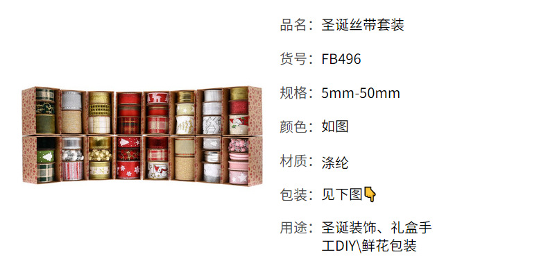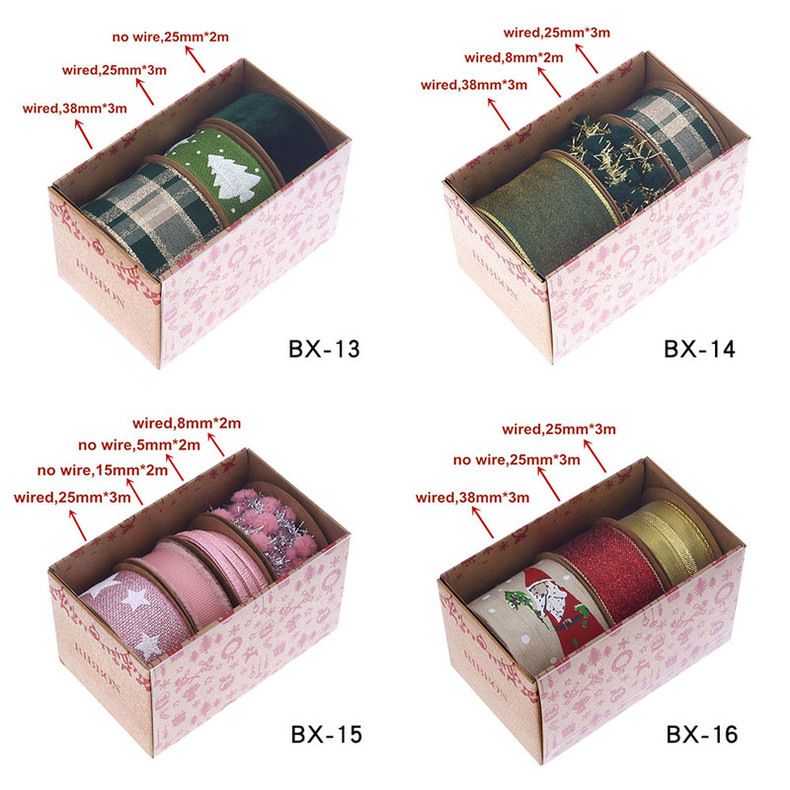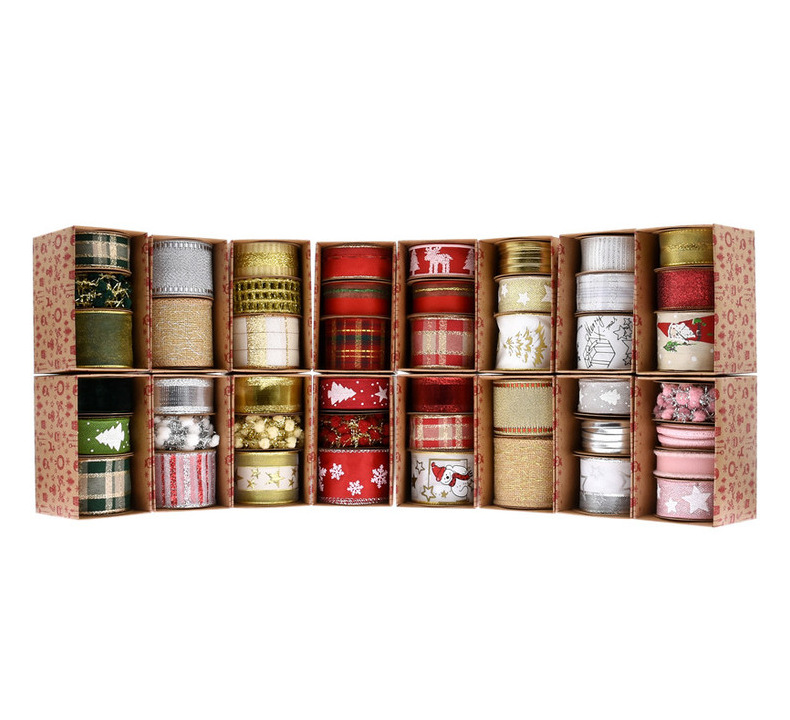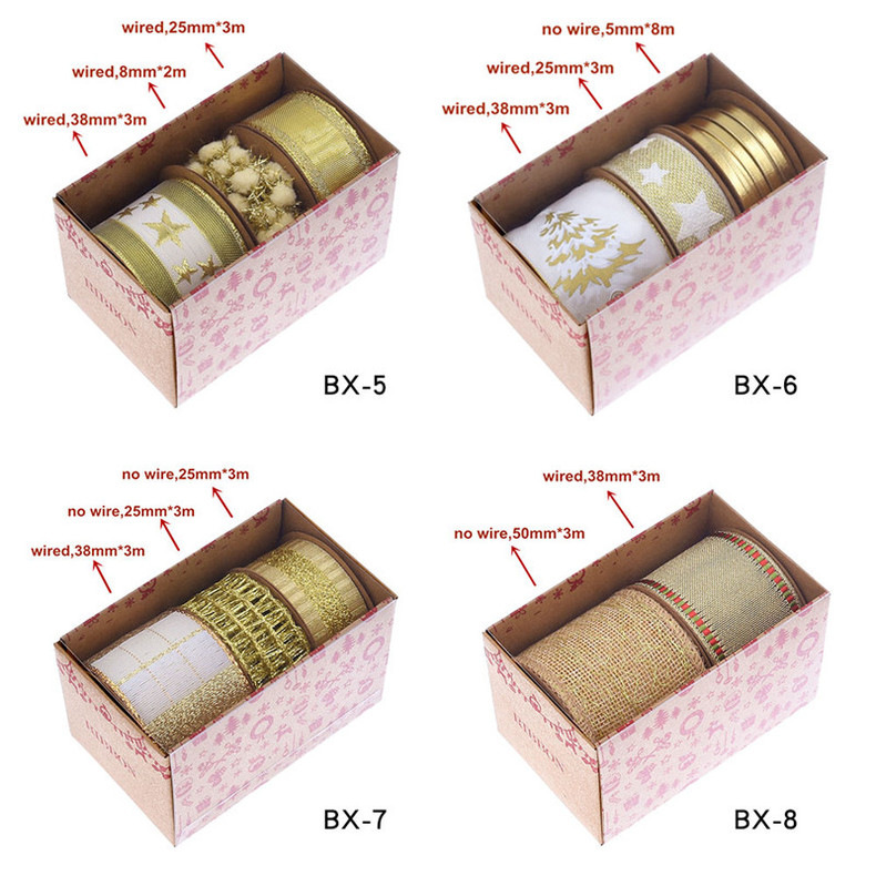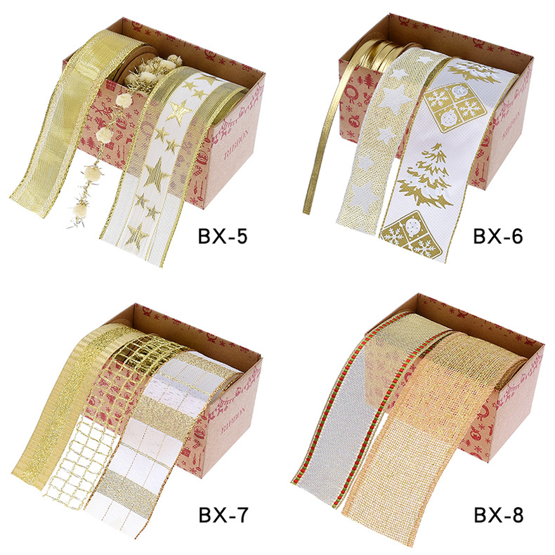 Nuevo transfronterizo Amazon Navidad cinta caja de paquetes de regalos árbol de Navidad decoración oro y plata cinta set
