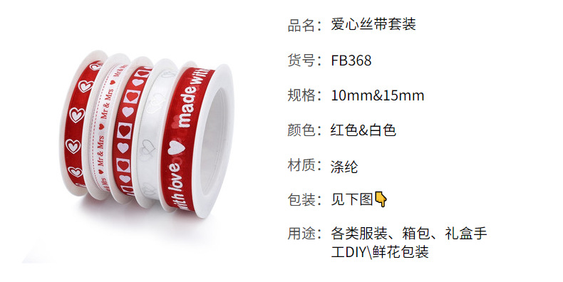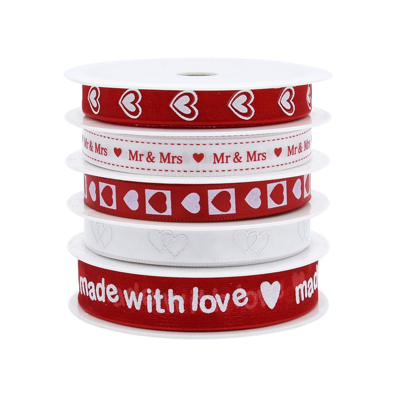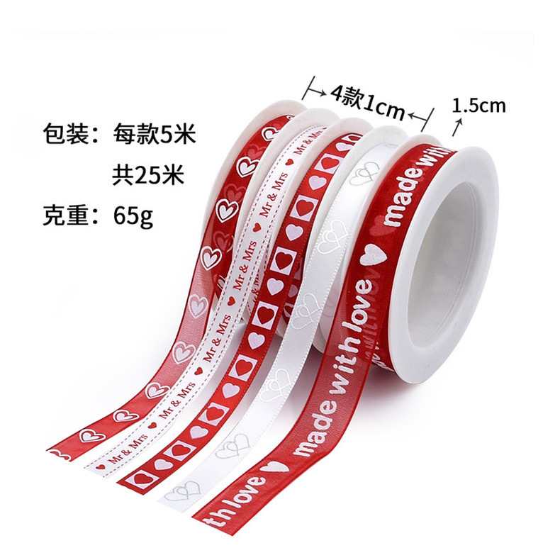Transfronteriza caliente cinco mezclado impreso en forma de corazón blanco y rojo cinta DIY hecho a mano arco regalo cinta de impresión