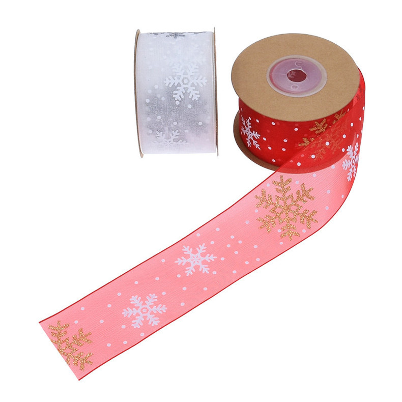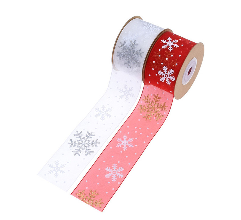 38mm de ancho transfronterizo nuevo polvo impresión copo de nieve cinta de regalo de Navidad flores cinta de regalo decoración cinta