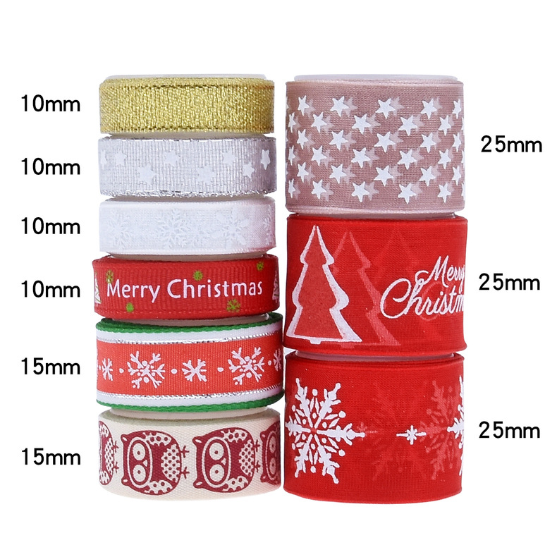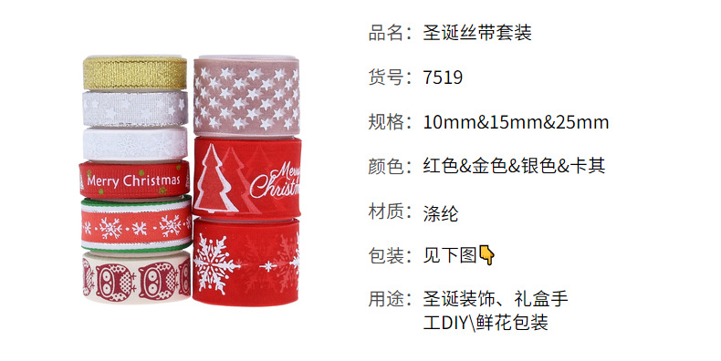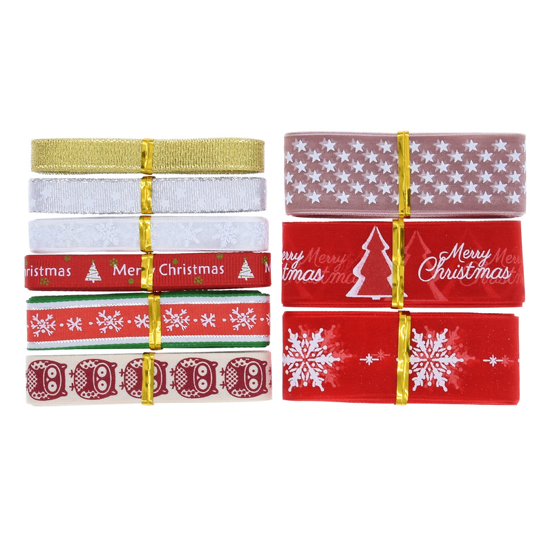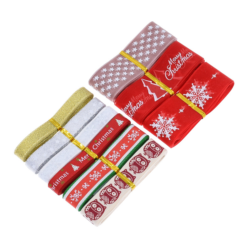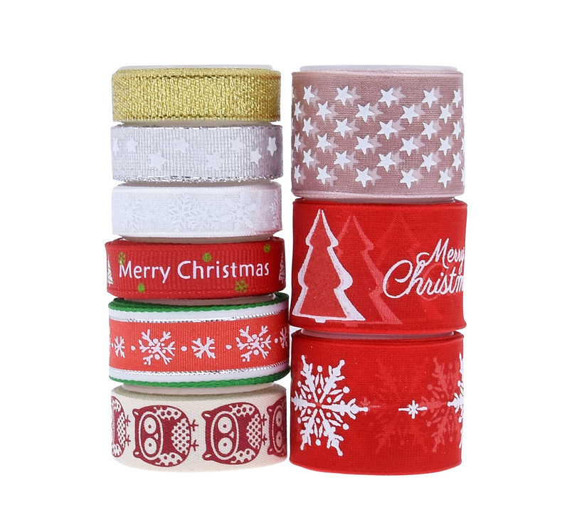Ventas transfronterizas de embalaje de cinta de Navidad caja de regalo hecha a mano arco impresa pentaca de nieve cinta 9