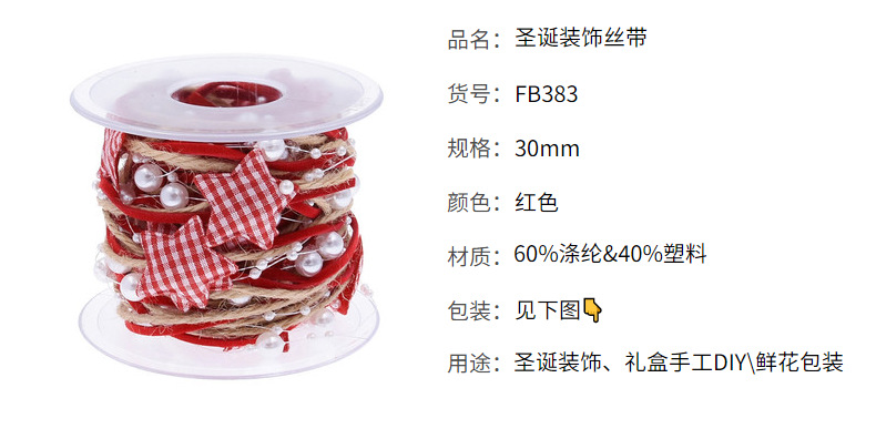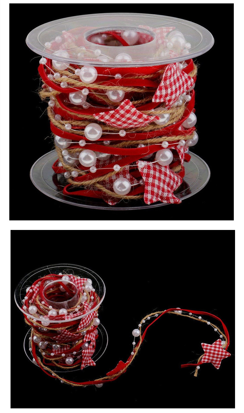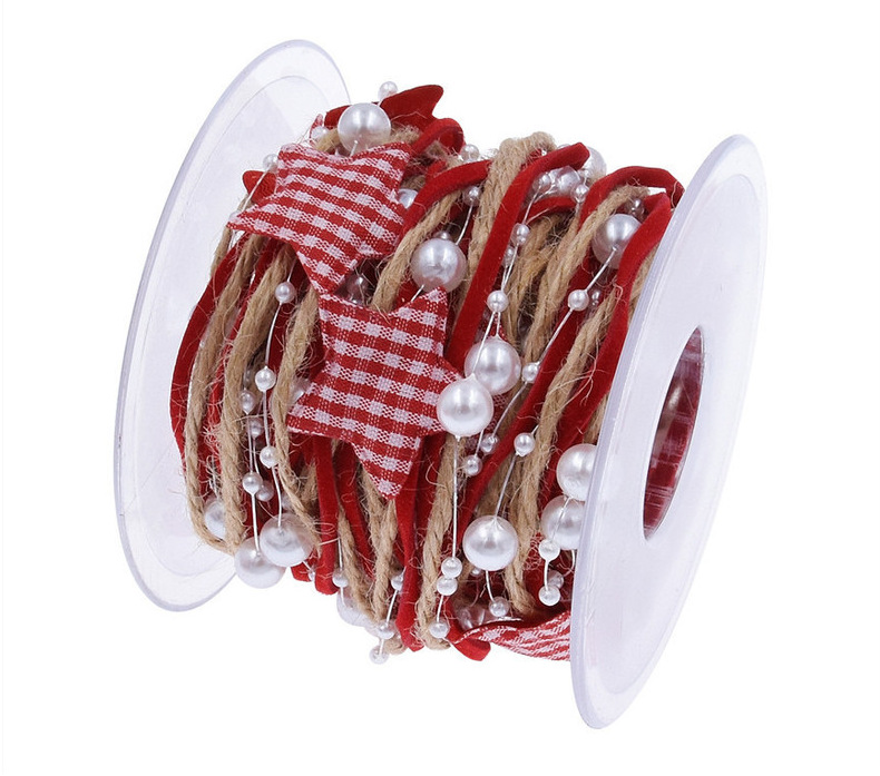 Transfronterizo de Navidad caliente hecho a mano estrella de cinco puntas Cadena de cuentas Cinta de regalo embalaje hecho a mano DIY árbol de Navidad cinta decorativa