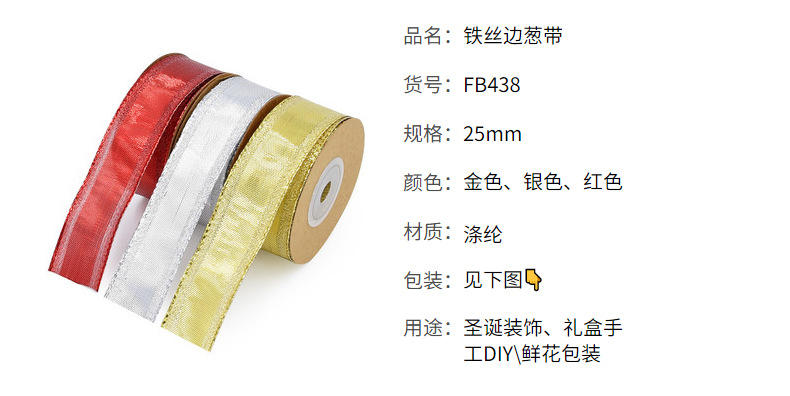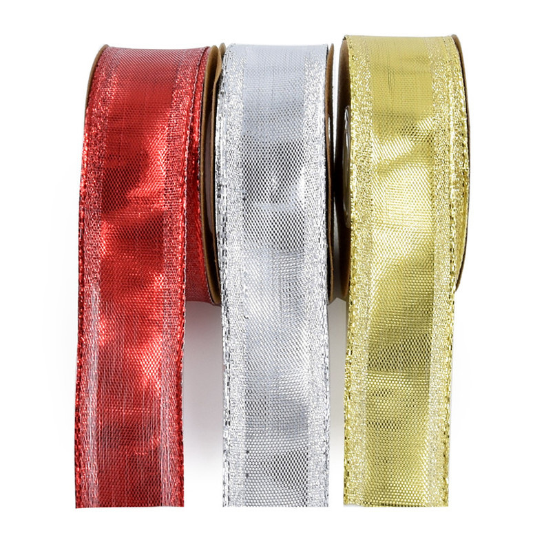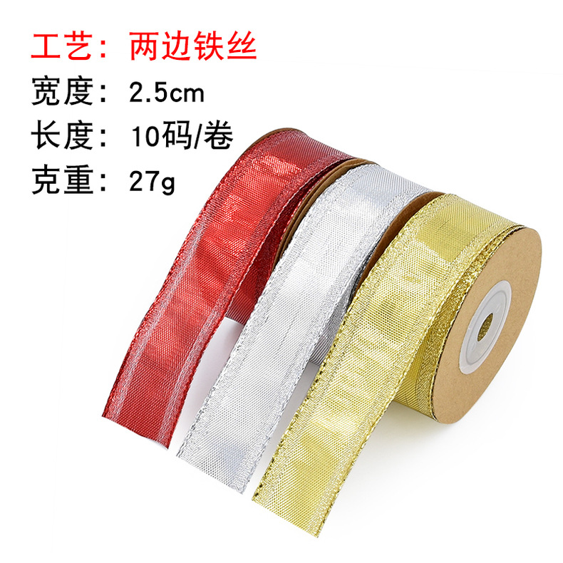 Transfronterizo nuevo color de Navidad tejido de cebolla dorada caja de regalo empaque de cebolla dorada de plata fina cinta 2 alambre de hierro 10 yardas