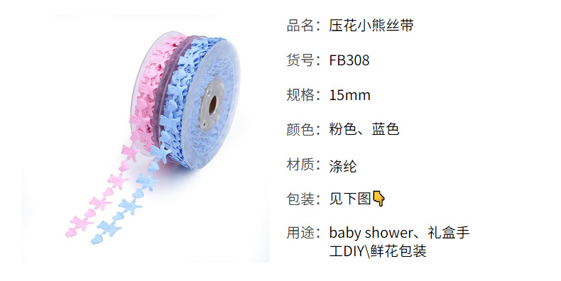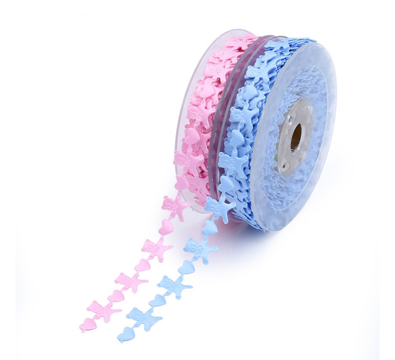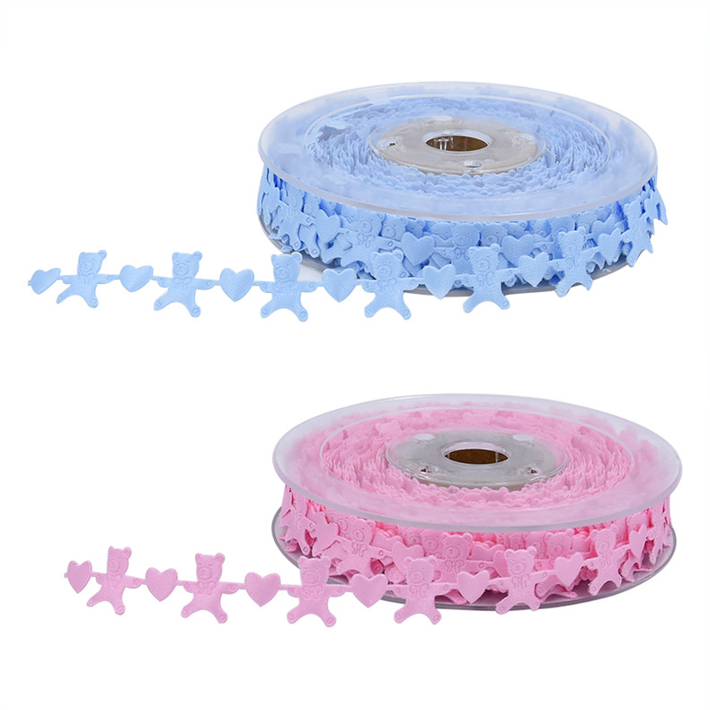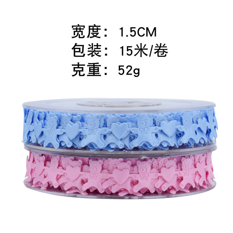 Transfronterizo azul en relieve ultrasónico pequeño oso amor cinta bebé cumpleaños luna llena decoración cinta hecha a mano