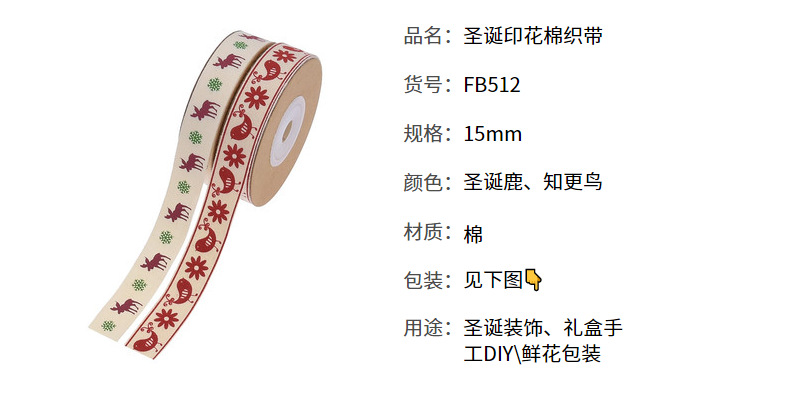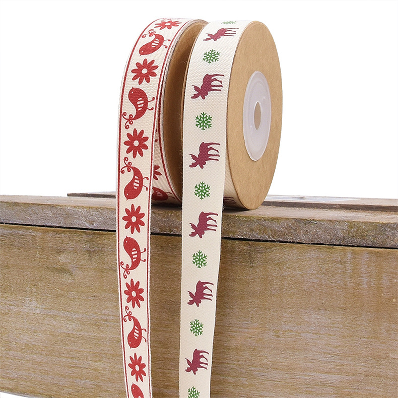 AliExpress nueva Navidad ciervo Robin impreso cinta de algodón embalaje de regalo tarjeta de felicitación de Navidad cinta decorativa de algodón 10m