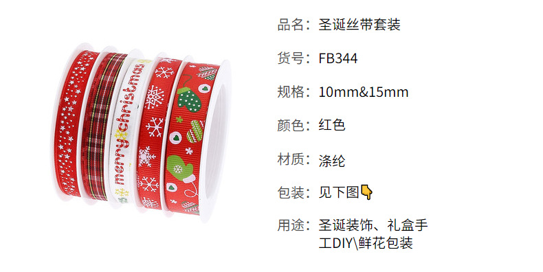 Conjunto de cinta Rowen con estampado navideño transfronterizo, material decorativo de vacaciones navideñas, combinación de cinta de guantes de copo de nieve impresos