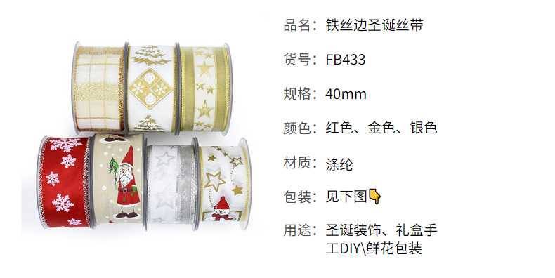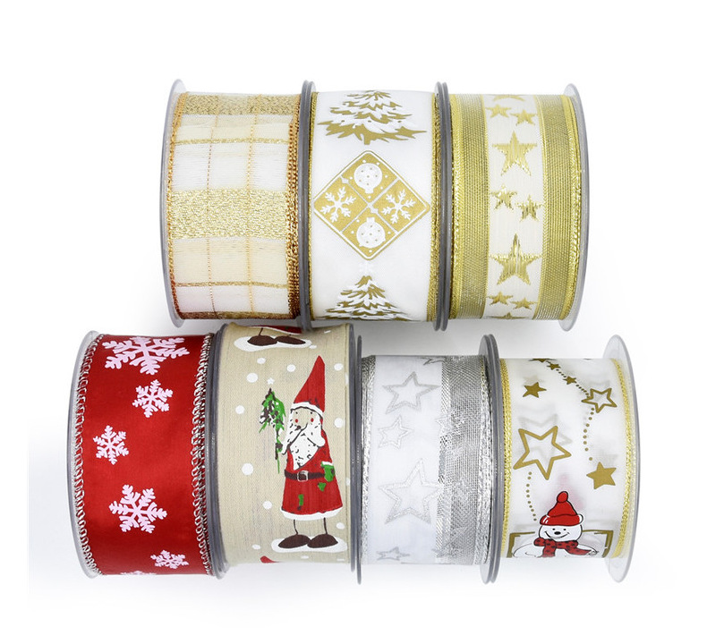 Transfronterizo Amazon hilo teñido jacquard 4cm cinta Navidad Santa Claus copo de nieve cinta de alambre de hierro borde 10 m rollo pequeño