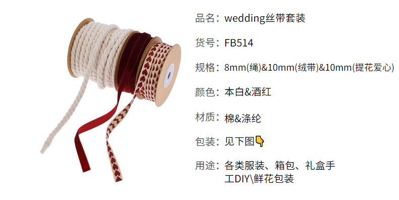 Nuevo conjunto de cinta de boda de San Valentín transfronterizo jacquard cinta de algodón de regalo creativo cinta de cuerda de embalaje