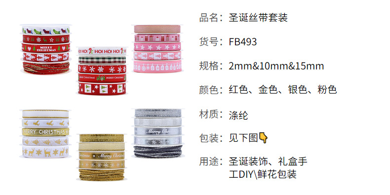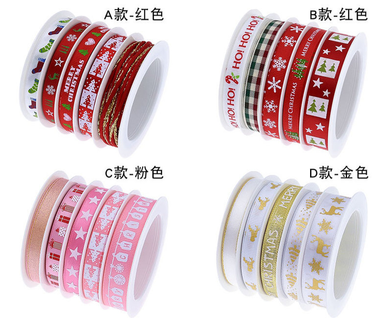 6 venta transfronteriza impresión de cinta de Navidad set caja de regalo festivales decoración caja de regalo embalaje cinta en stock 5m