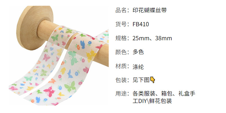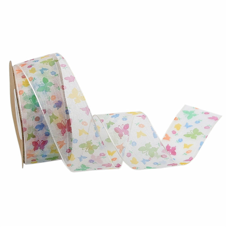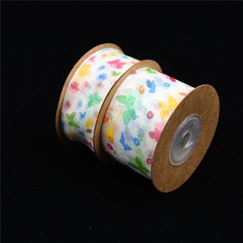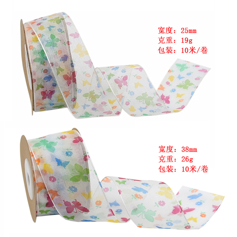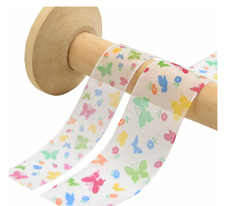 Impresión transfronteriza de primavera mariposa colorida cinta de nieve transparente hecha a mano DIY arco toque de cabello material cinta