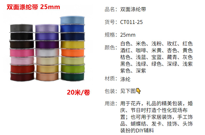 Transfronterizo 2,5 cm cinta de alta densidad de doble cara poliéster hecho a mano jardinería decoración regalo flor material de embalaje cinta