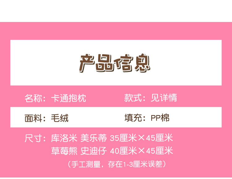 | Color | Melodía,Información sobre coolomi,Oso de fresa,Stitch |