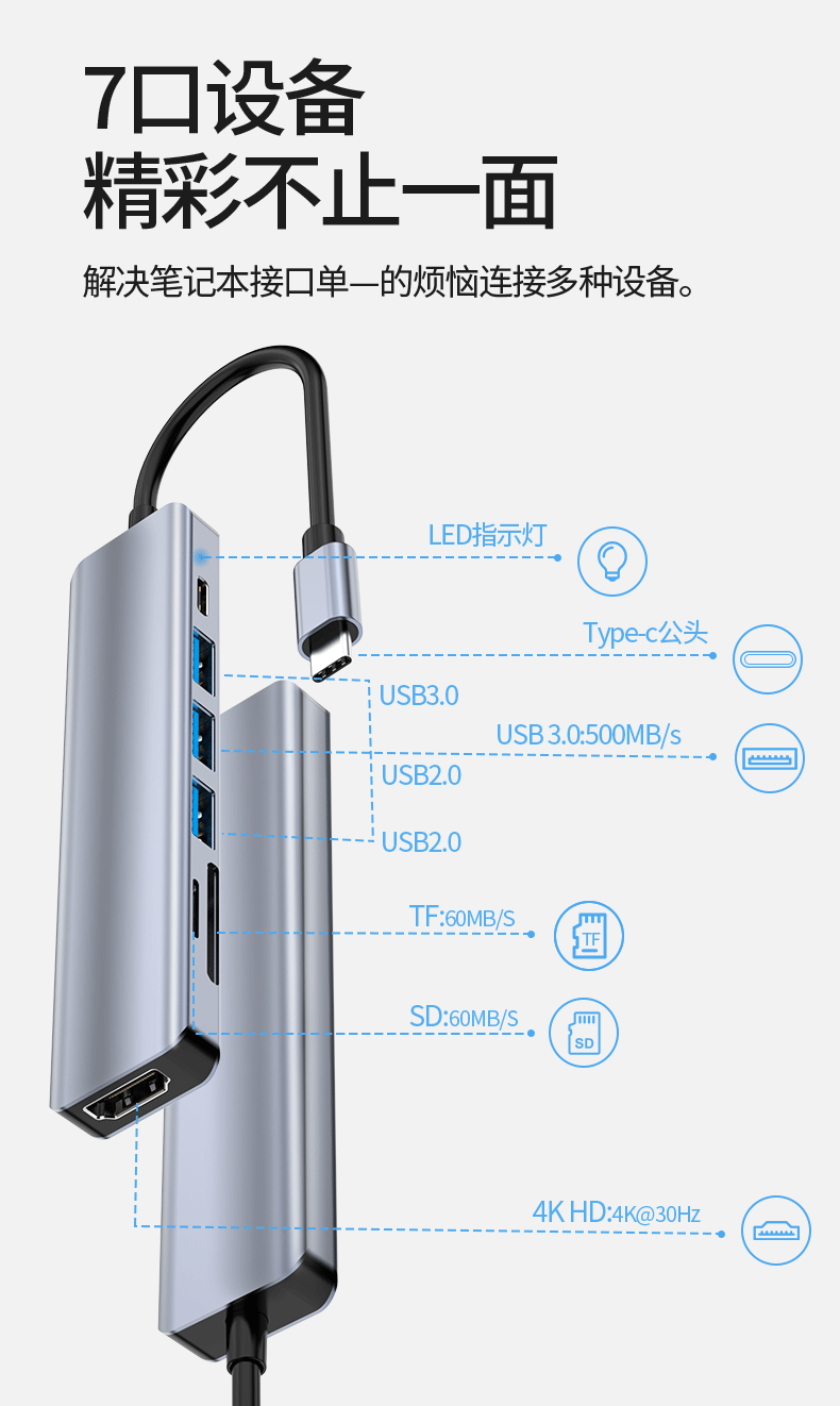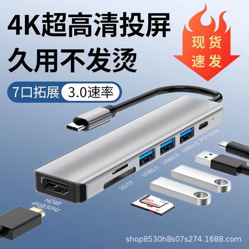 Tipo-c siete en uno muelle de expansión HDMI pantalla de proyección USB hub3.0 multi-función divisor Hub estación de acoplamiento