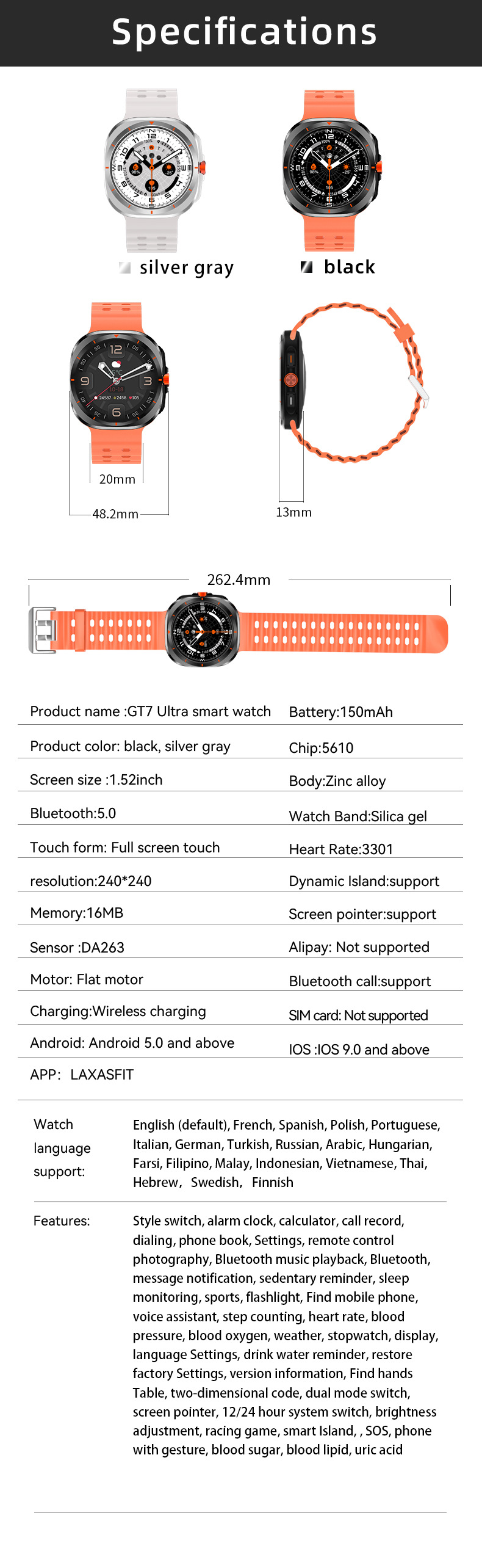 Reloj inteligente GT7ULTRA para hombre, multifuncional, batería de larga duración, frecuencia cardíaca, presión arterial, deportes, Huaqiangbei, detección de oxígeno en sangre