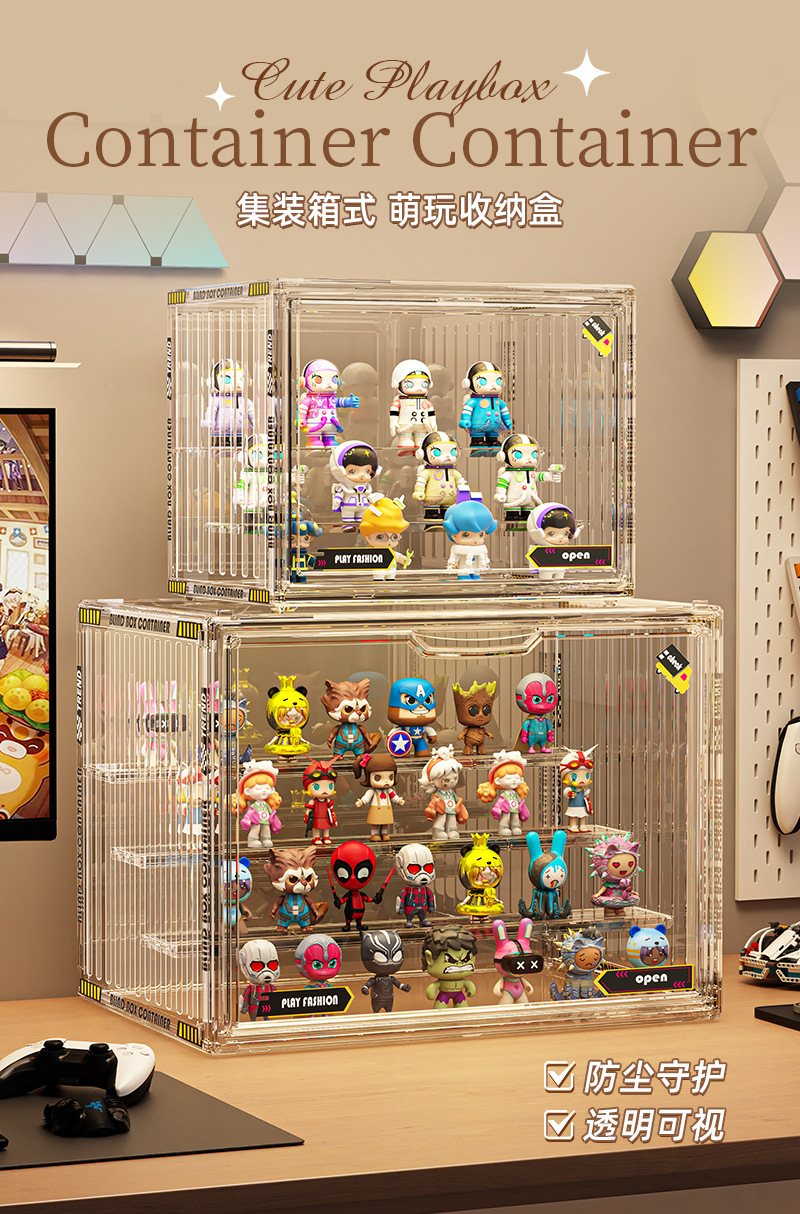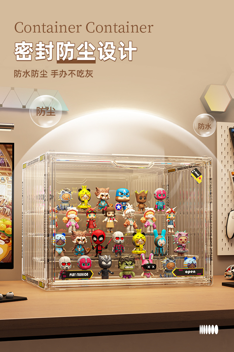 Caja ciega caja de exhibición de acrílico hecha a mano caja de almacenamiento de plástico caja de almacenamiento de madera de Lego de burbujas a prueba de polvo