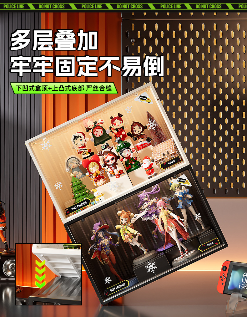 Caja ciega de color, caja de almacenamiento, estantes de mano, bloques de construcción cuadrados, juguetes, contenedores de acabado, estantes de exhibición transparentes DIY