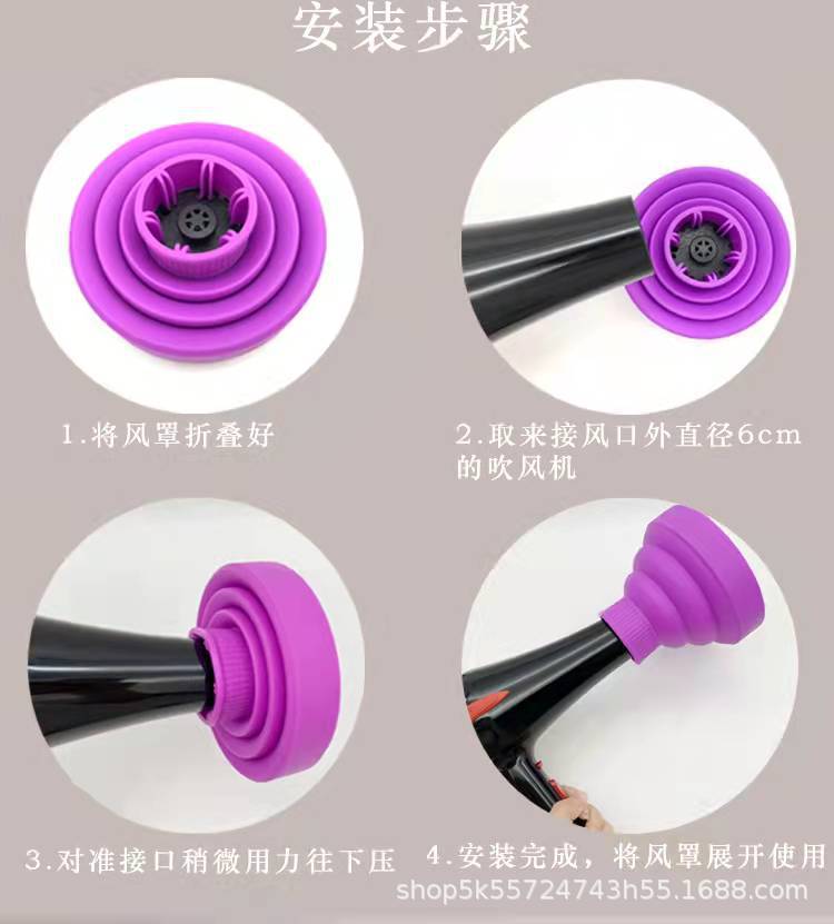 Secador de pelo de silicona Capucha plegable de silicona retráctil secador de pelo conformación Capucha plegable multiusos secador de pelo cubierta