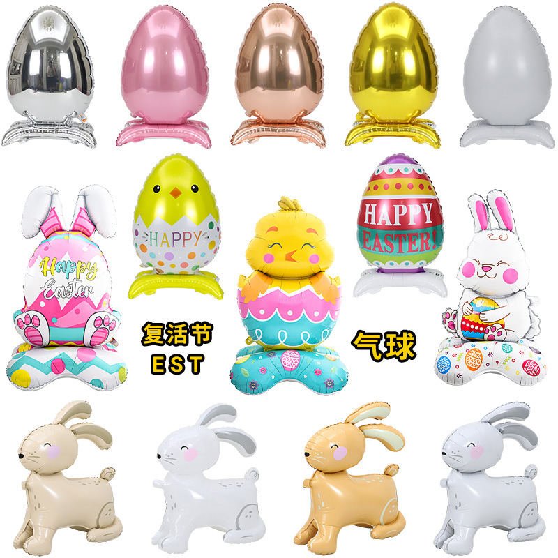 Pascua globo tridimensional base de pie globo de aluminio gran conejo huevo forma tema decoración