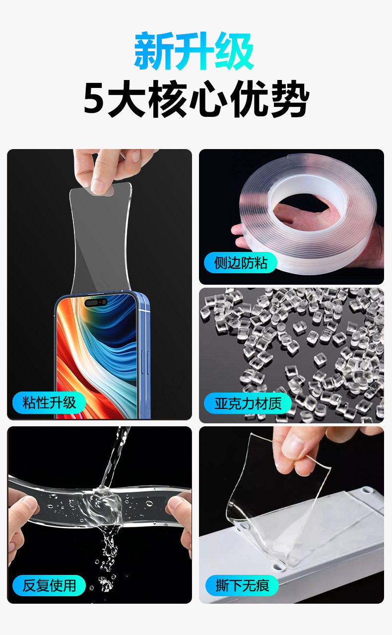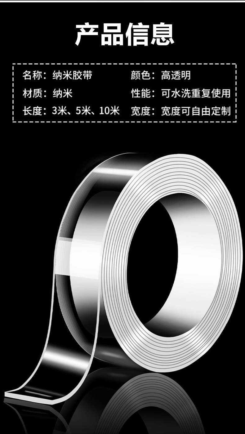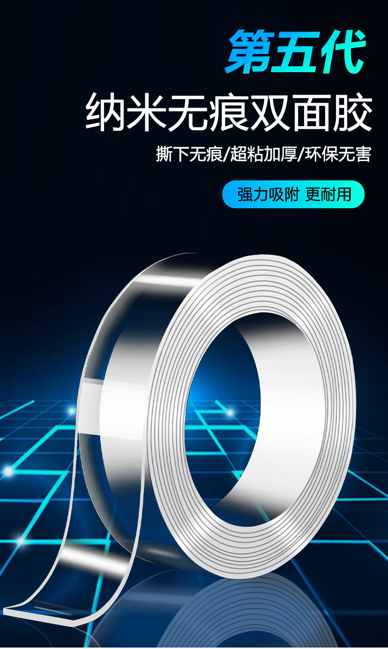 Cinta Nano engrosada, adhesiva fuerte, lavable, sin costuras, cinta mágica acrílica transparente nano de doble cara al por mayor