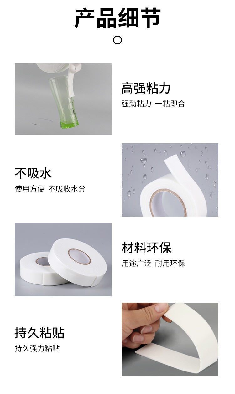 Adhesivo de doble cara de espuma de espuma de succión, pegamento de esponja, cinta de espuma eva, pegamento sin trazas de 2mm de espesor, pegamento fuerte fácil de rasgar para automóviles