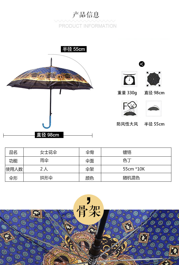 Diámetro del paraguas: 98 altura del paraguas: 80 radio: 55