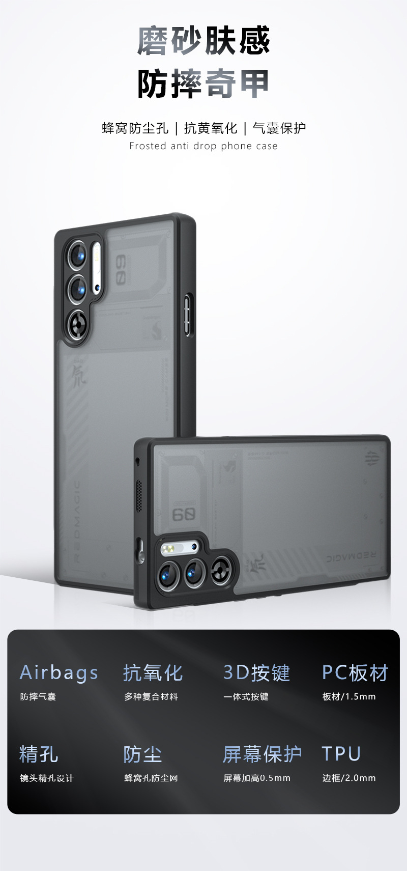 Adecuado para la piel de la carcasa del teléfono móvil Red Devils 9Pro esmerilado RED MAGIC10Pro airbag a prueba de caídas de polvo de la carcasa Kong Qijia