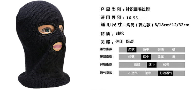 Sombrero Otoño Invierno Sombrero de punto de un solo orificio de tres orificios Montar al aire libre a prueba de viento y cálido Sombrero de lana Sombrero de juego CS