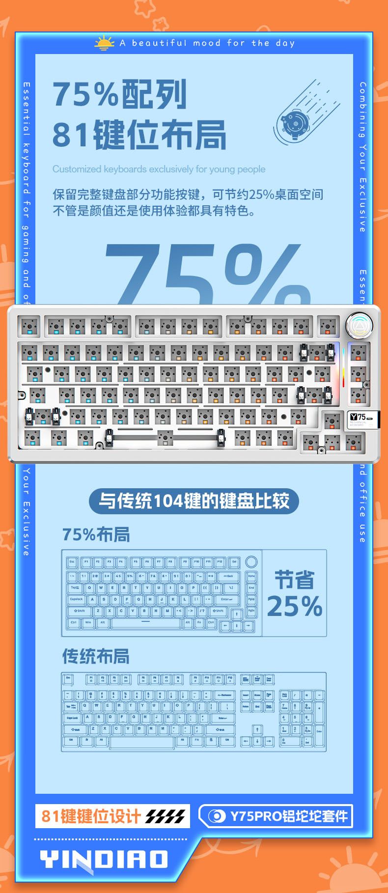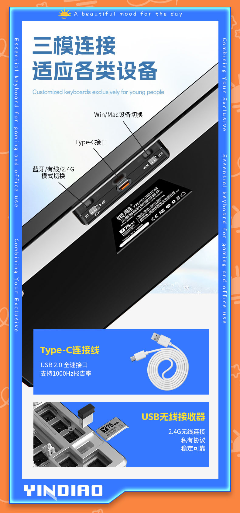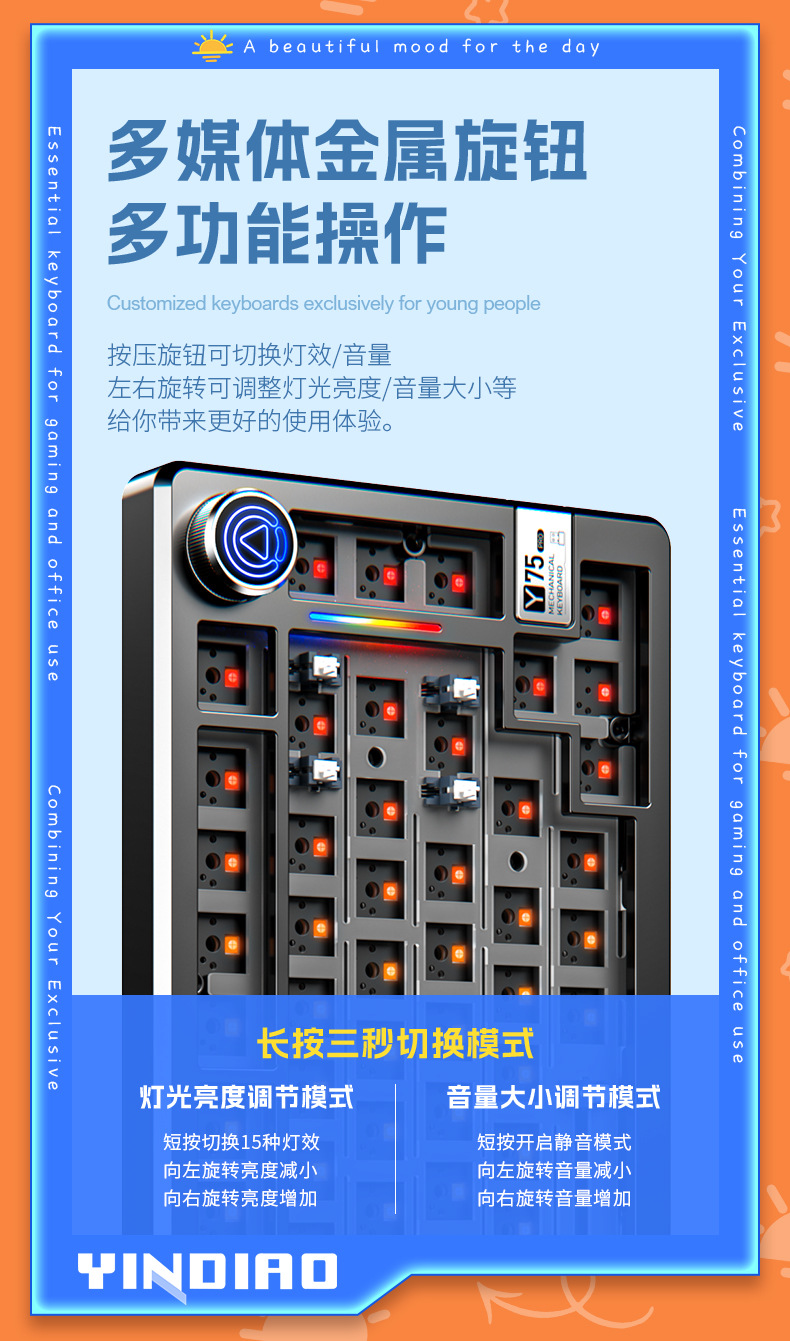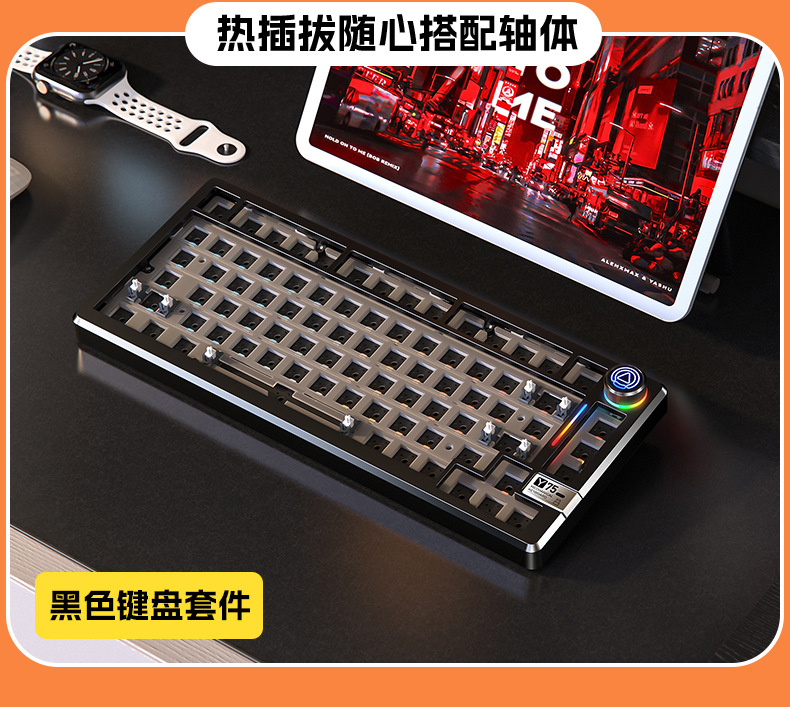 Silver Carving Y75Pro Aluminium Tuo Tuo Bluetooth Inalámbrico Teclado mecánico de tres modos Juego de juegos Computadora con cable de metal