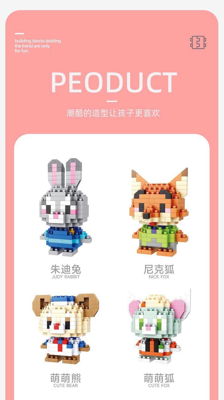 Bloques de construcción de micropartículas para niños decoración de muñecas de dibujos animados de animales juguetes ensamblados creativos para niños y niñas puesto de regalo al por mayor