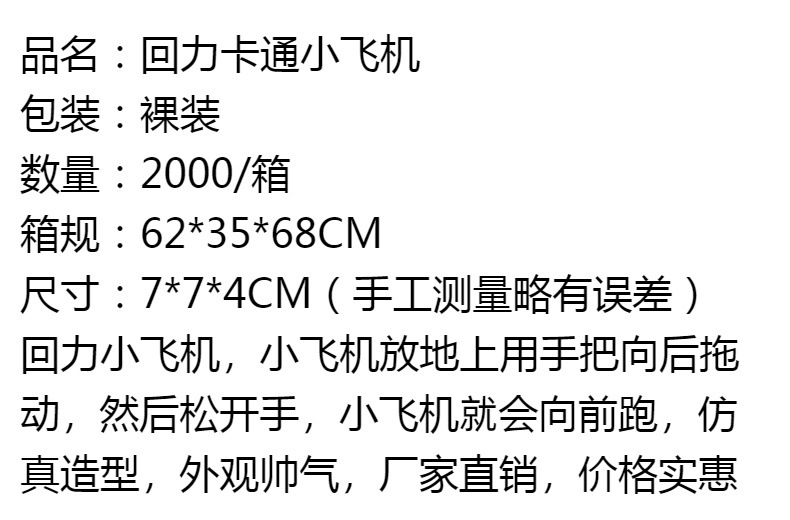 Juguete para niños tire de dibujos animados pequeño avión regalo de jardín de infantes MINI avión de pasajeros niños y niñas pequeño regalo puesto al por mayor