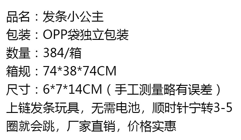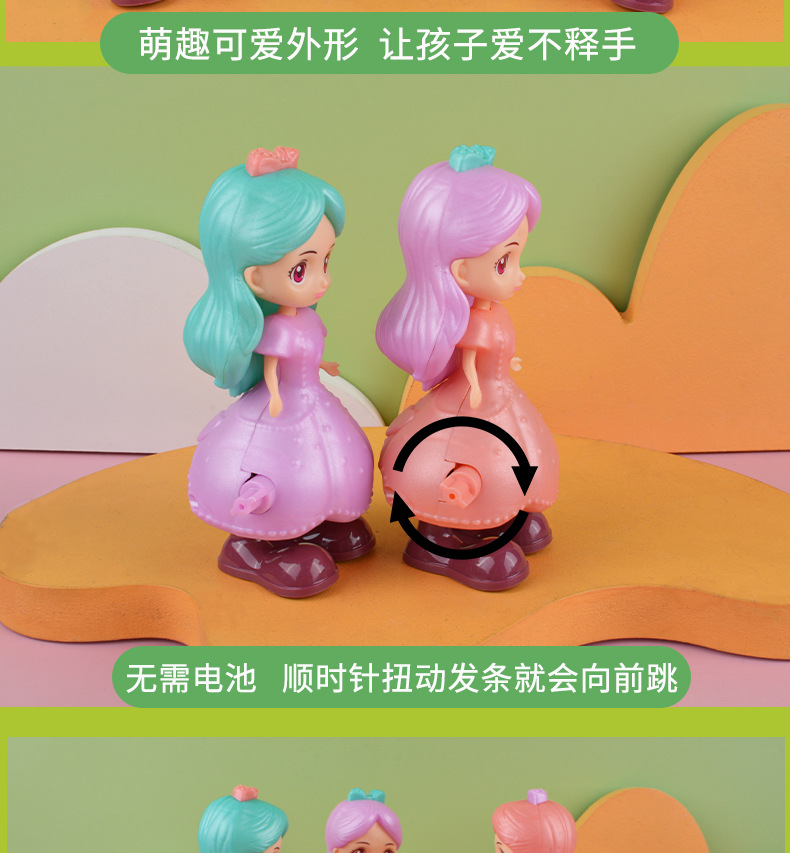 Winding Clockwork princesa niña juguete de dibujos animados lindo salto niña niños educativos muñeca fuente la fábrica al por mayor