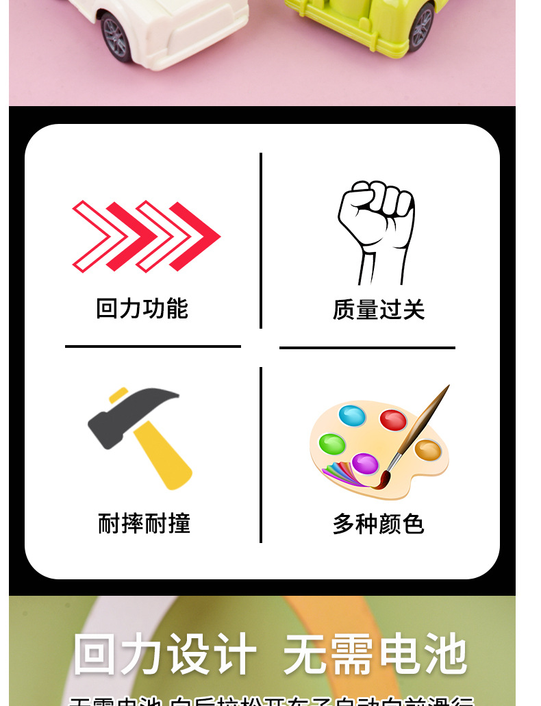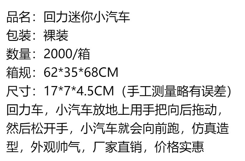 | Color | Tire hacia atrás el mini coche-color al azar |