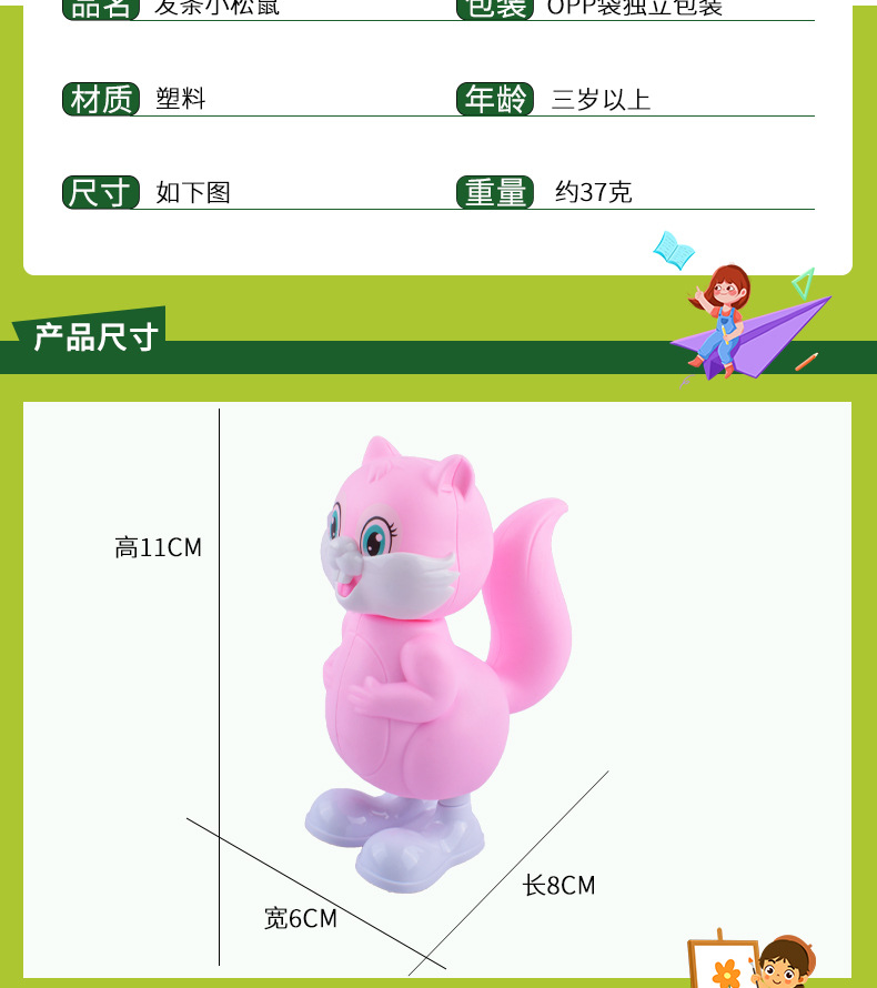 Cadena de salto pequeña ardilla de los niños reloj de juguete pequeño animal de dibujos animados bobinado educativo pequeño regalo puesto al por mayor